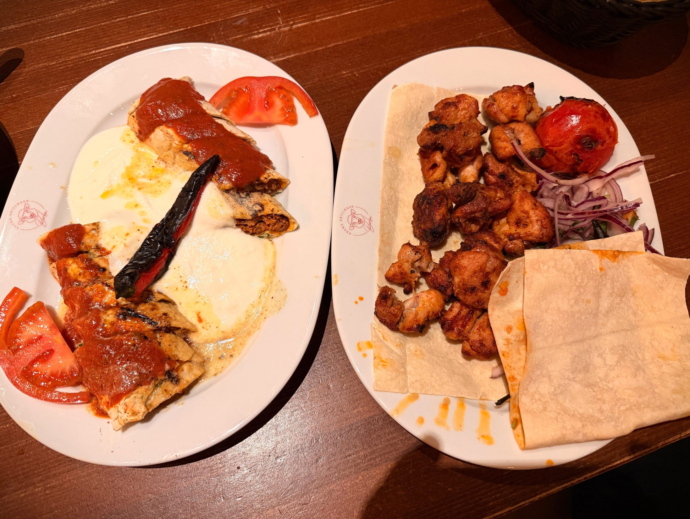 I don’t usually make my way out to Charlottenburg for dinner since it’s a bit far from where I live, but visiting my uncle who lives there gave me a good excuse to take him out for Turkish food nearby. We ended up at Adana Grill, and honestly, it was a pleasant surprise. The place is spacious but was packed for a Wednesday night, which says a lot. Plenty of staff on the floor kept things moving quickly, and our Kurdish waiter was genuinely warm and attentive. There’s a big open BBQ grill visible behind glass, so you get all the atmosphere without the smoke filling the room. We went for the Adana Sarma Beyti, spicy minced lamb grilled on a skewer, wrapped in thin lavash, sliced into rounds, and served with yogurt, tomato sauce, and sizzling butter. Really good. The grilled chicken was also juicy and tender with no fatty bits, and they make their own Ayran too. The price is around €35 per person, and they take both cash and card.