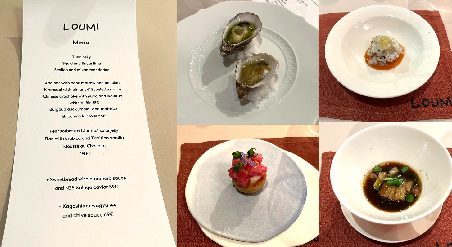 I recently had a chance to eat at LOUMI, one of the Michelin star restaurants in Berlin. When you go to places like this, it always raises the question of whether the price is really worth the experience, and in many cases, once you pass a certain euro threshold, I do not think it is. The restaurant offers a €150 set menu per person, along with a selection of cocktails, wines, and champagnes ranging from €12 to €22/per glass. There are also optional extras, like oysters and Wagyu beef (€69), which we ended up ordering because we still felt hungry after finishing the set menu. As explained on their website, their cuisine is based on French traditions, refined by Japanese precision, and inspired by Nordic and Asian techniques, with a strong focus on sauces.