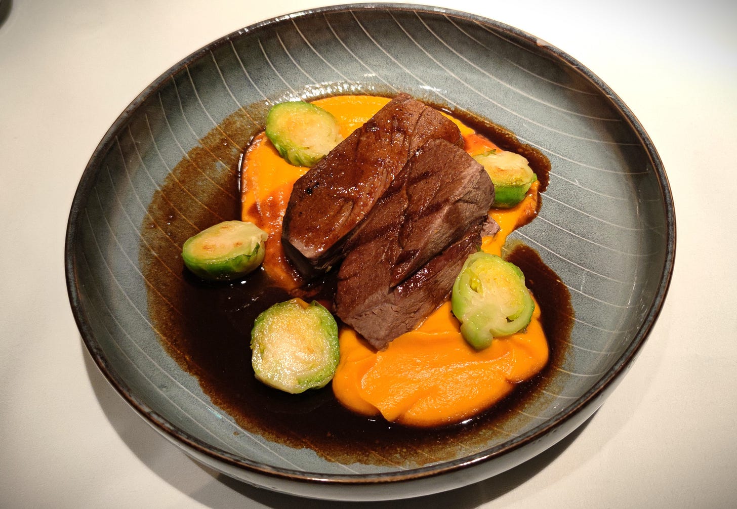 Confit haunch of wild boar: Brussels sprouts, pumpkin cream, daikon (⭐4/5)