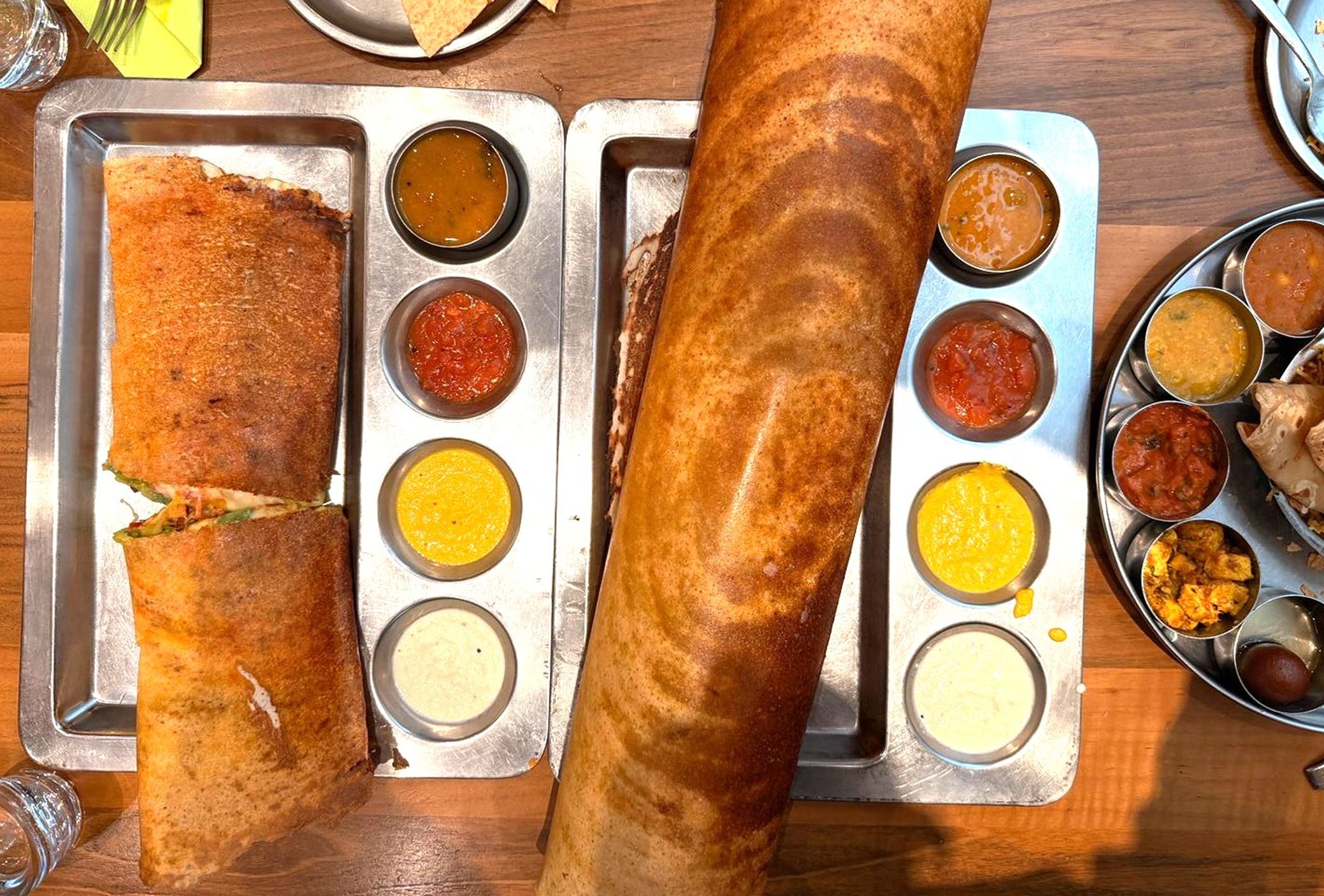 This place was recommended by an Indian friend specifically for their dosas. It’s a South Indian restaurant that claims to be the largest Indian restaurant chain in the world, with locations across several countries. The restaurant itself is quite spacious, and the staff were very friendly. The menu is fully vegetarian and vegan. Their specialty is dosa, like the one in the photo. You’ll find both traditional versions served with ghee and more modern twists topped with melted cheese, including Gouda. They also offer thalis, which I found a bit overpriced for what you get, but the dosas were reasonably priced. One odd thing was a separate section of the menu dedicated to Chinese food, which we skipped entirely. They accept both cash and cards. Average price is around €20 per person including a soft drink.