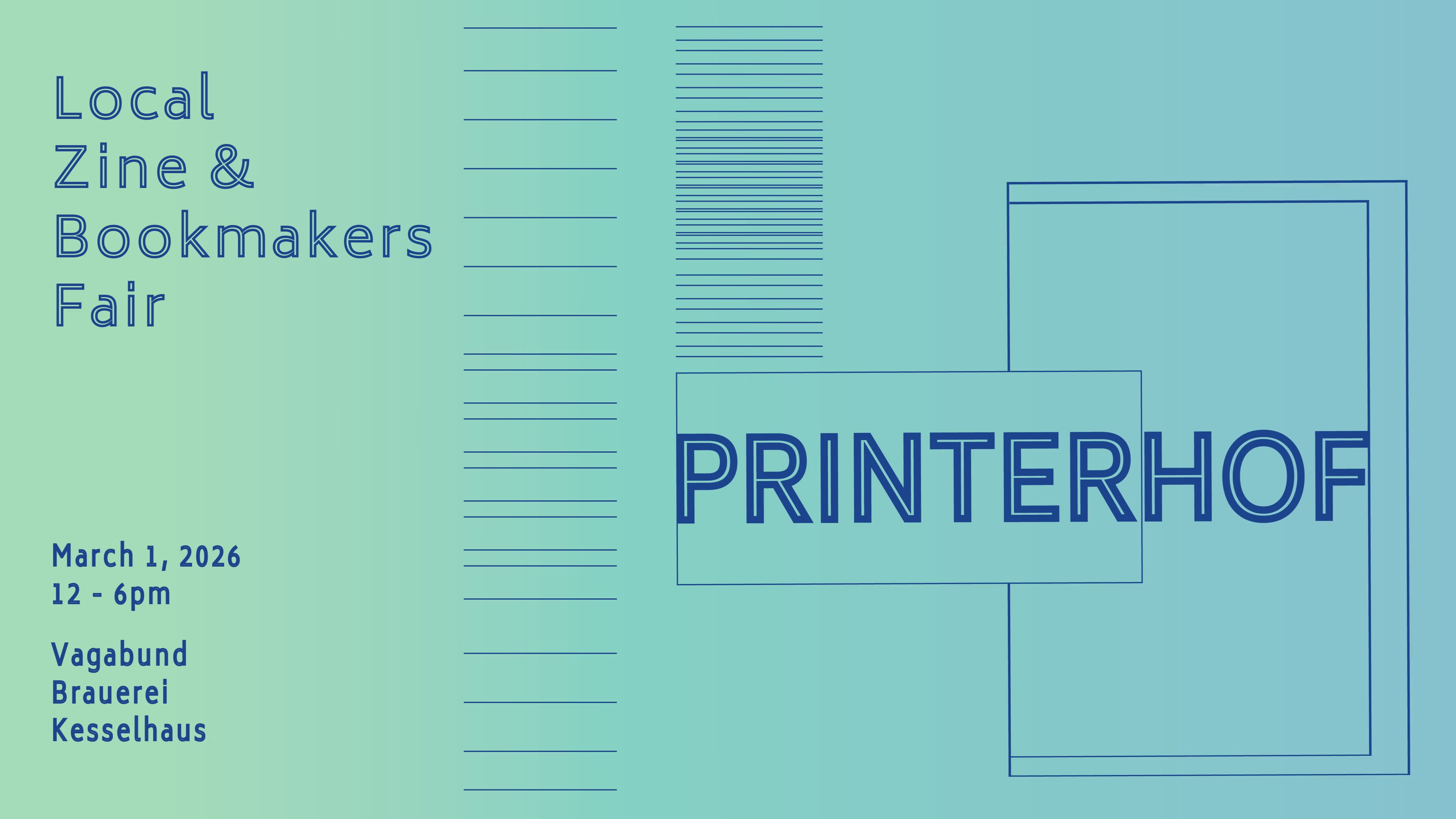 The fourth PRINTERHOF market brings together local publishers, zinemakers and small presses at Vagabund Kesselhaus. The afternoon includes a main-level market and bar with food and coffee, plus ticketed workshops on scream performance, storytelling, stamp carving and zine-making, and eco-poetry. More info.