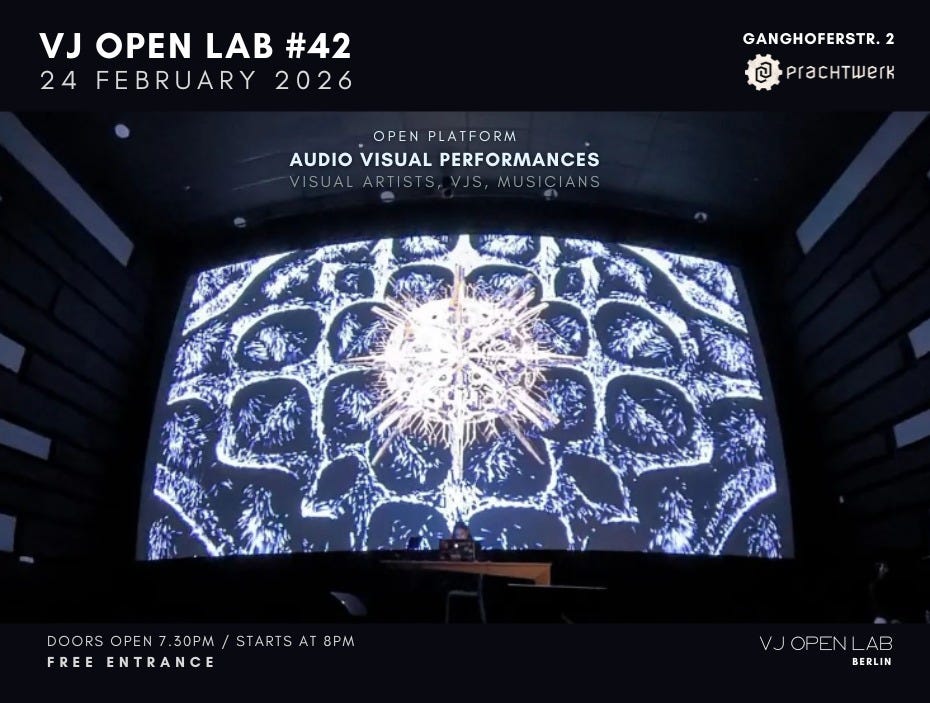 VJ Open Lab #42 presents an evening of live audiovisual performances by international visual artists and musicians, with short sets of around 20 minutes followed by an open jam. Founded in 2017, VJ Open Lab functions as a meeting point within Berlin’s AV scene, bringing together first-time performers and experienced artists in a shared space for exchange and experimentation. More info.