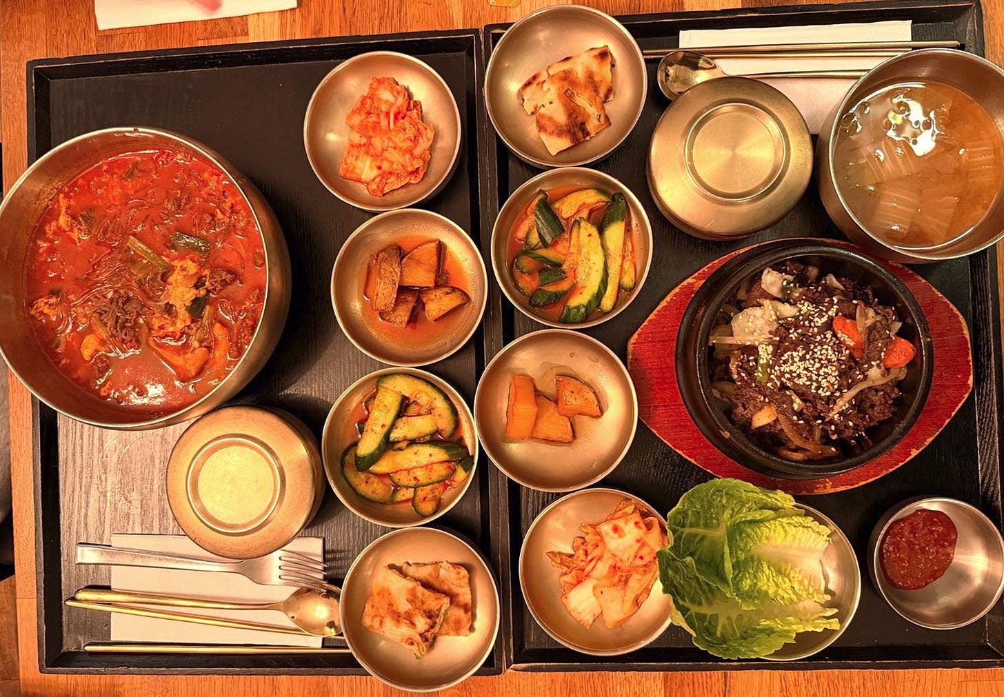 This is a solid Korean restaurant with three locations in Berlin. The Charlottenburg branch stands out with a broader menu and more options compared to the Prenzlauer Berg location. One thing I really like is the set menu style, where your main dish comes with a variety of small side dishes. There are plenty of vegetarian and vegan options alongside Korean classics like bibimbap. They also offer Korean BBQ, which comes in at around €40 for two people. We tried the classic bulgogi with beef and a spicy beef stew with glass noodles, both comforting and well balanced. You will also find Korean spirits and beers on the menu. Overall, it is a reliable choice when you are craving Korean food. The staff is friendly, speaks English, accepts cards, and prices average around €25 per person including a drink.