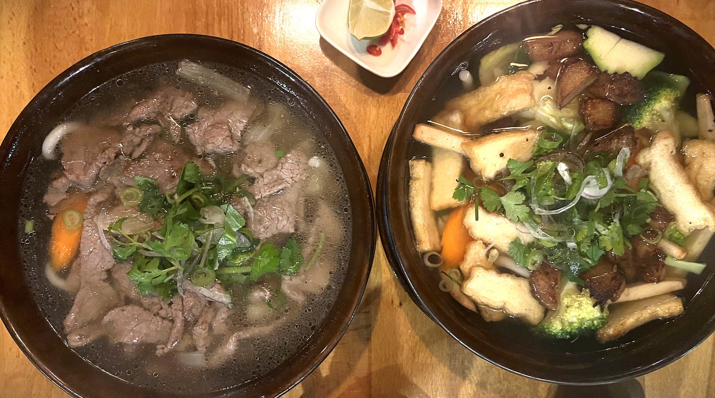 This place serves pho with some interesting variations, like udon noodles instead of the usual rice noodles. They also have plenty of vegetarian options. The atmosphere is simple, like most Vietnamese restaurants, but the food is great. Just a heads-up – it’s cash only!