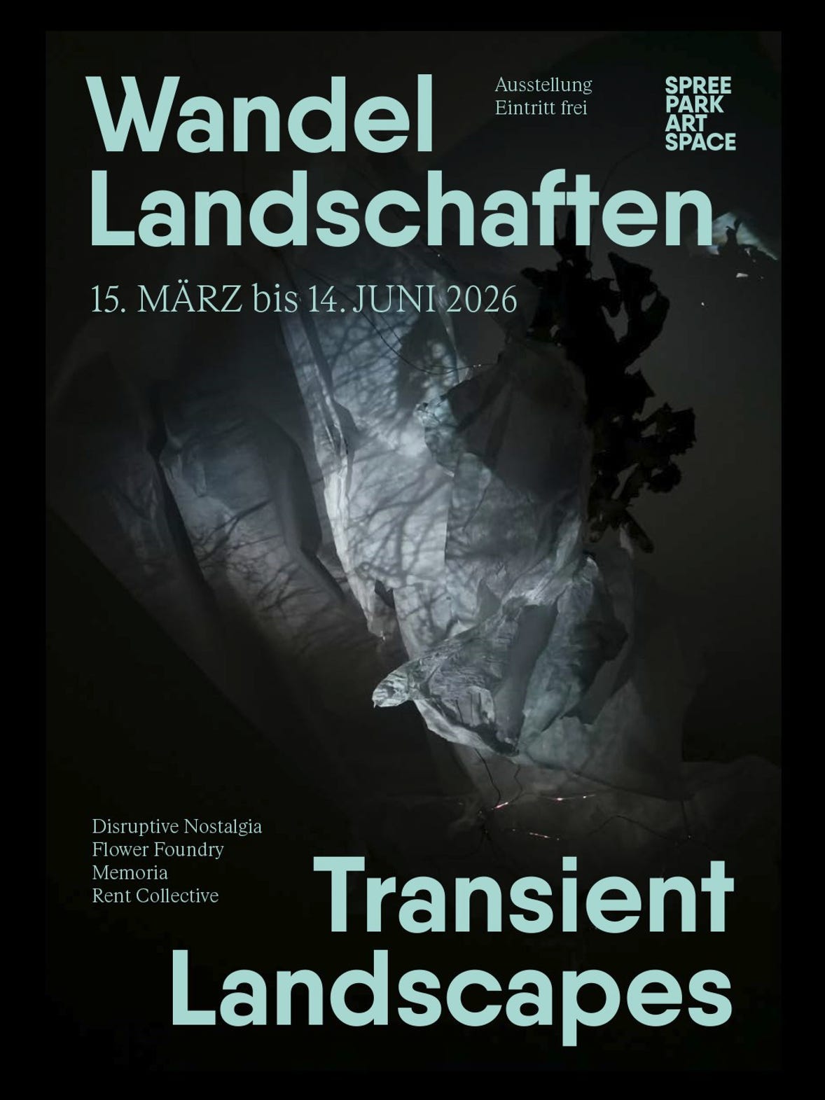 Four artistic groups - Rent Collective, Disruptive Nostalgia, Memoria, and Flower Foundry - open a group exhibition at Spreepark Artspace in the Plรคnterwald. Each collective responds to Spreepark as a site shaped by transformation, bringing together works that move between nature, memory, myth, and decay. The opening day on 15 March includes guided tours, workshops, and walks. More info.