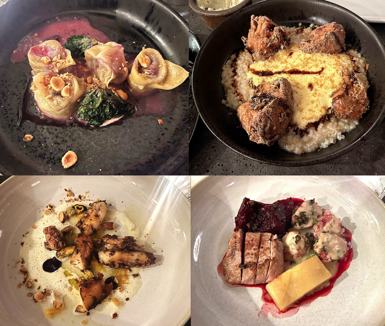 I recently found this restaurant hiding in a Prenzlauer Berg courtyard, and the experience was a real delight. It’s casual fine dining done right: unpretentious, charming, and a relaxed atmosphere that makes you want to come back. I visited in winter, but I can already imagine how lovely it would be in warmer weather, especially if they set up outdoor seating in the courtyard. The staff are attentive and warm without being overbearing, and the food justifies the price. You can choose à la carte, or a set menu at €79 per person, which covers a good spread of what the kitchen does best. We went for the octopus, which was so tender we actually asked the chef where it was from. The hazelnut ravioli had this rich, nutty flavor that reminded us of Nutella in the best possible way. The veal was solid, and the risotto with fried celery root had a really nice combination of ingredients. I’d warmly recommend this place, especially for a special occasion or when you have family or colleagues visiting the city.