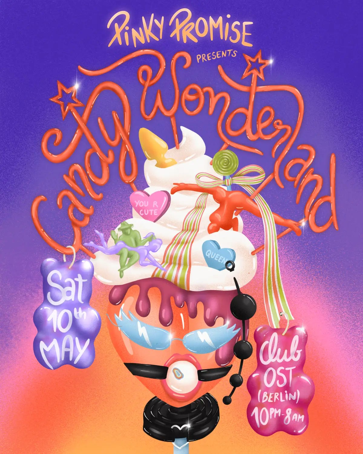 Pinky Promise is hosting a summer opening party built around playful themes of sweets, sensuality, and expression. The event features six themed spaces, each offering a different atmosphere. The night includes workshops such as Flirting with Fantasies, alongside live painting, a massage area, and connection games. You are encouraged to dress in a way that suits your mood or desires. More info.