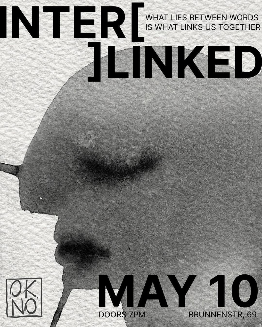 INTER[]LINKED is an audio-visual performance that places the audience inside a circle of eight speakers, where sound made from breath, body movements, and subtle vocal elements forms the basis of the experience. Participants are given a reflective question to carry with them during the evening and can anonymously submit a personal question to others in the room. These questions and responses are displayed throughout the space as part of the installation. The event combines listening, observation, and anonymous exchange in a shared setting. More info.