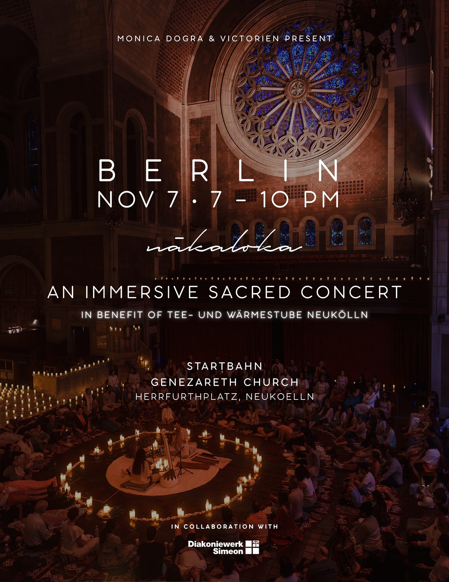 Nākaloka brings candlelight, world flutes, song, and spoken teachings into a focused program of storytelling and recitation. Participants move through shared reflection as sound and text draw from multiple traditions to examine ideas that sit beyond doctrine. As a nonprofit, Nākaloka produces free public activations that encourage personal change, generosity, and local connection. This edition aligns with the Tee- und Wärmestube Neukölln initiative, and all ticket proceeds support Diakoniewerk Simeon’s work with neighbors facing housing insecurity in Neukölln. More info.