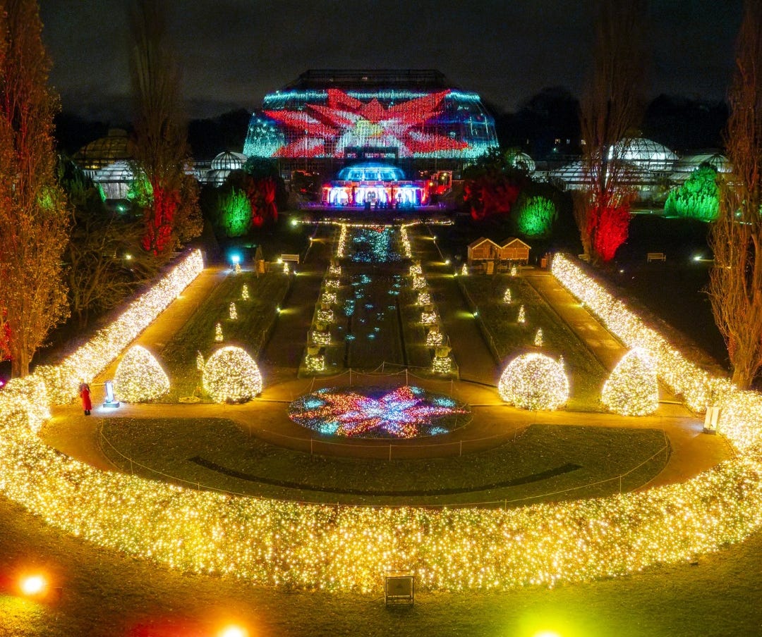 The Christmas Garden at the Botanical Garden in Berlin turns the grounds into a seasonal light experience with a long walking route through illuminated paths, quiet corners, and detailed installations. You can move through a one and a half kilometer trail that features more than a million lights, thousands of small fixtures, and a range of color displays placed throughout the gardens. The centerpiece is the Great Pavilion, which works with the Italian Garden to present a coordinated mix of music, projections, and light. More info.